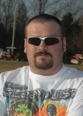 T.J. poses in the pit area in 2006.